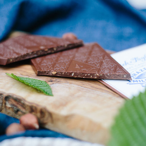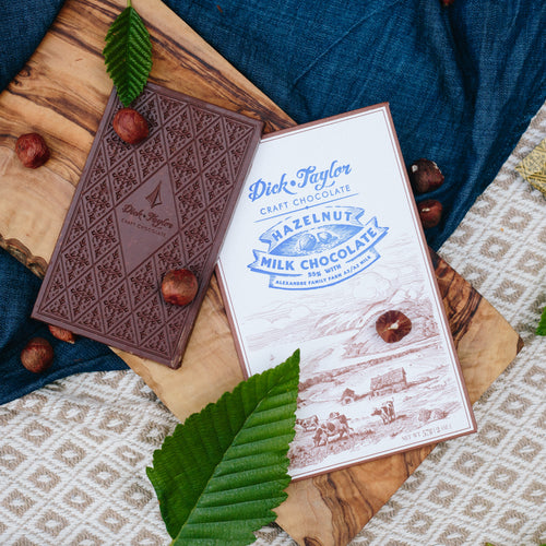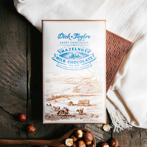 Delicately roasted Oregon hazelnuts have been paired with our exceptional milk chocolate made from earthy Ugandan cacao and old-fashioned A2/A2 whole milk from Alexandre Family Farm.