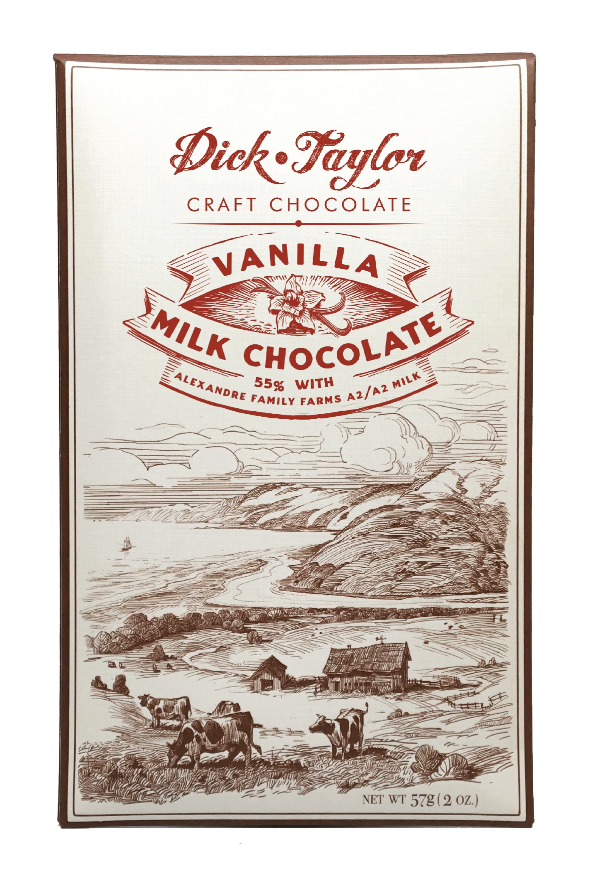 Starting with the highest quality Ugandan cacao, and the best old-fashioned organic A2/A2 whole milk from Alexandre Family Farm, we have created a deliciously creamy 55% milk chocolate. Organic Madagascan vanilla beans are a delicate addition to the caramel tasting notes of the milk chocolate.